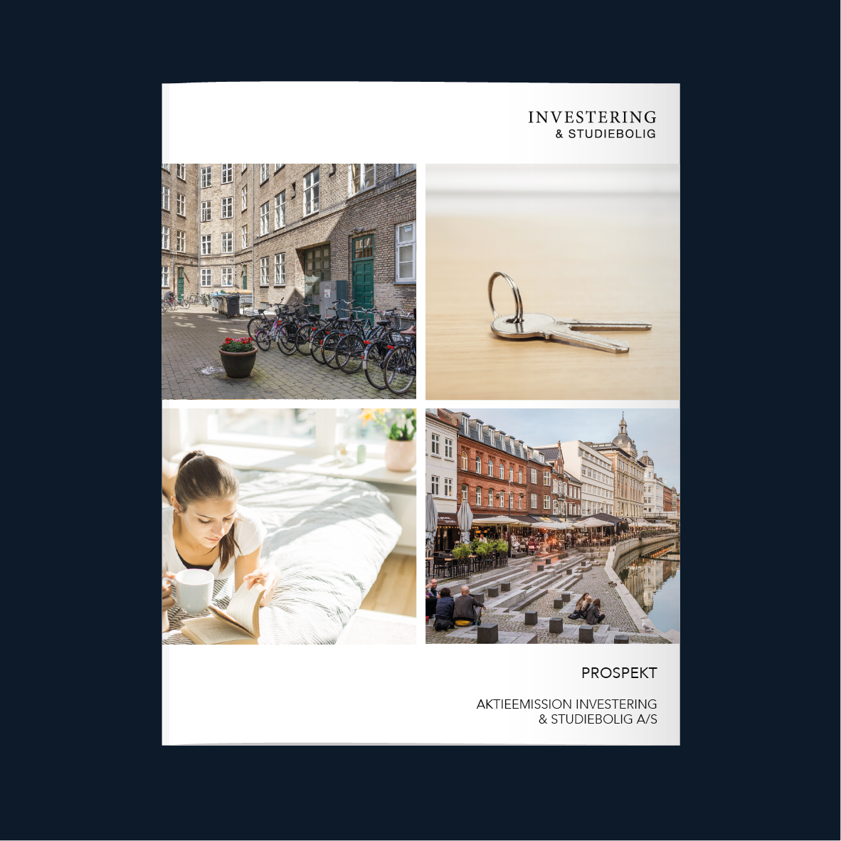 Vores investeringsmateriale indeholder et prospekt, en rådgiverliste og en tegningsblanket. I prospektet kan du læse alt om Investering og Studiebolig A/S, køb og salg af aktier m.m.