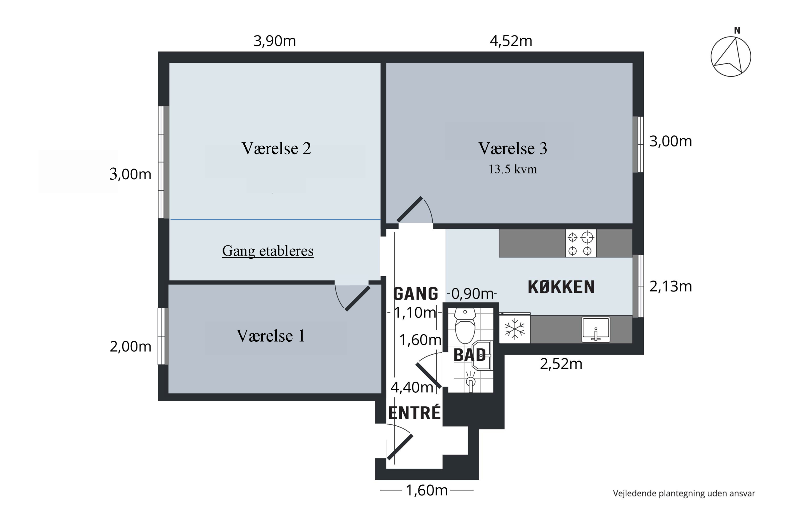 Husleje fra 3.200,- + forbrug.