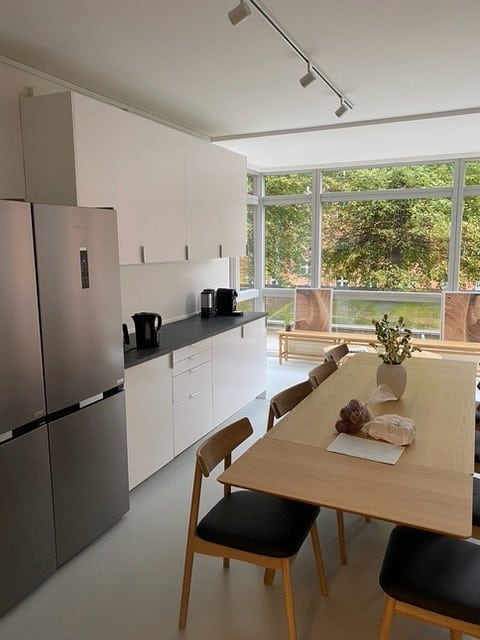 Velkommen til Brønshøjvej 10, vores renoverede ejendom designet til fællesskab og samvær. Hver lejlighed består af seks værelser, herunder et specielt parværelse, hvilket giver plads til op til syv beboere på hver etage. Det veludstyrede køkken er det perfekte samlingspunkt med et rummeligt spisebord og otte stole, ideelt til fællesspisning eller spilleaftener. I karnappen er der hyggelige møbler, perfekte til en afslappende kop te eller en velfortjent pause efter en lang dag på universitetet. Køkkenet er fuldt udstyret med moderne hvidevarer, herunder tre køle-fryseskabe, to ovne og to opvaskemaskiner samt masser af skabsplads. Derudover har hver lejlighed adgang til to vaskemaskiner og to tørretumblere.